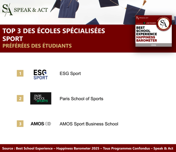 Les 3 écoles spécialisées dans les métiers du sport les mieux notées par les étudiants en 2025 :