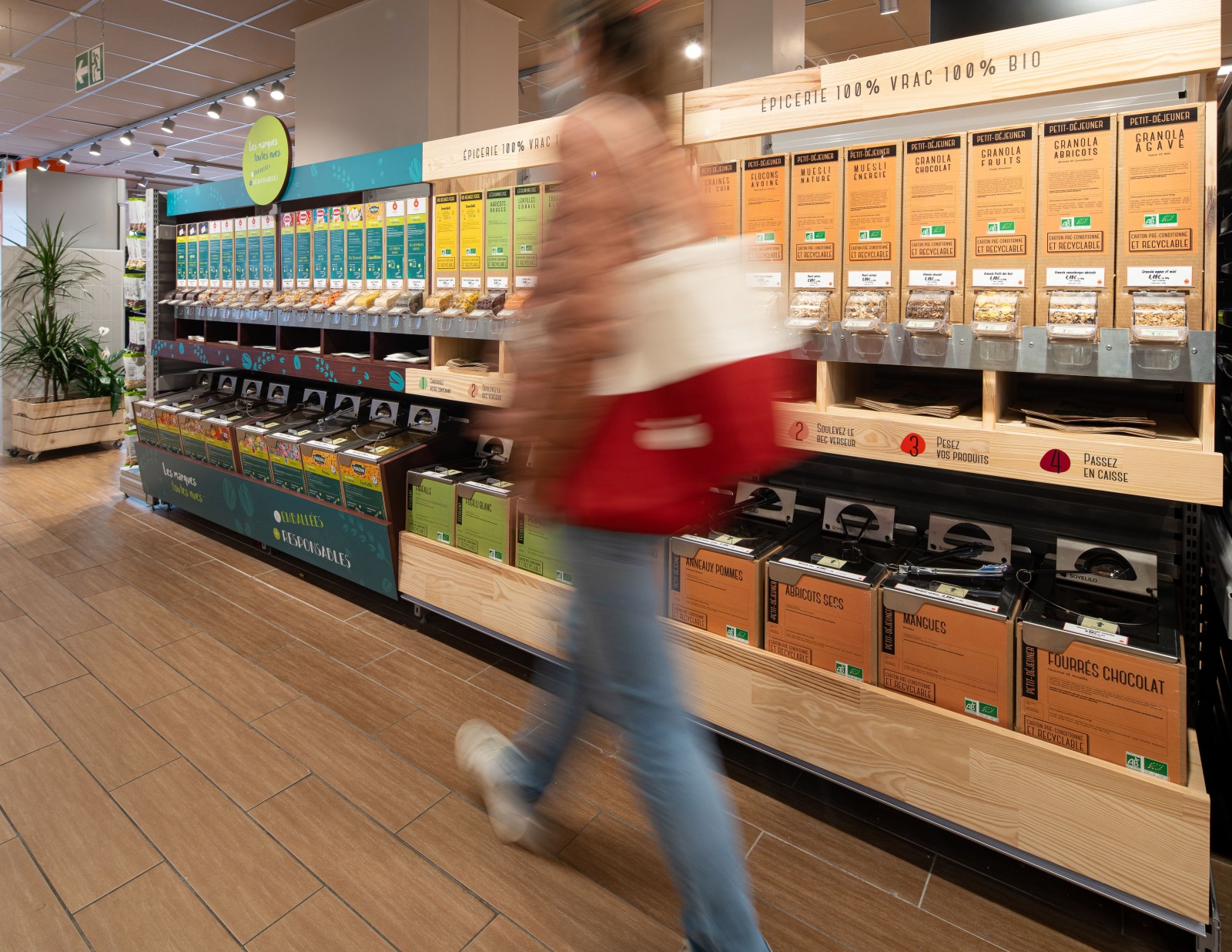 Pâtes, riz, cacahuètes, bonbons ou café... Pour la première fois, les consommateurs vont ainsi trouver dans leur supermarché habituel pas moins d'une trentaine de produits en vrac de grandes marques françaises réunies au sein d'un même meuble sous le slogan « Moins Emballées, Plus Responsables ».